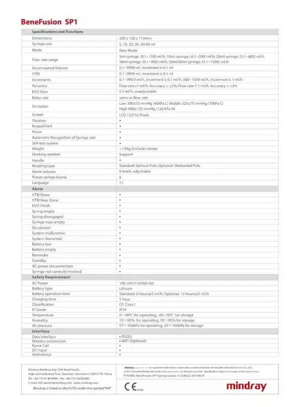 Mindray Syringe Pump – BeneFusion SP1